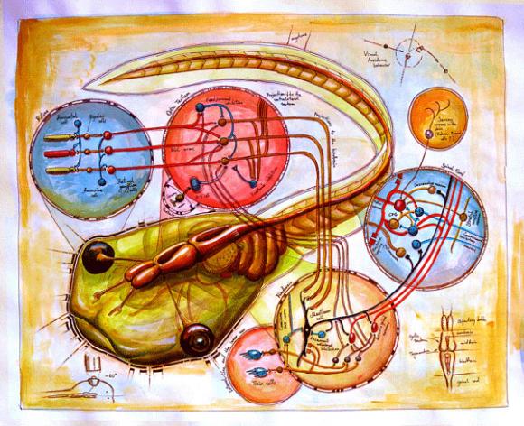 In a new study, Brown University neuroscientists looked cell-by-cell at the brain circuitry that tadpoles, and possibly other animals, use to avoid collisions. The study produced a model of how individual inhibitory and excitatory neurons can work together to control a simple behavior.