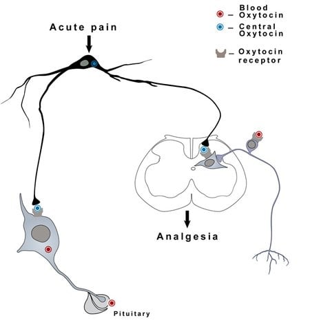 Sometimes small molecules are enough to alter our mood or change our metabolism. A prime example is oxytocin, which is involved in fostering emotions such as trust and love. The hormone is produced only in the brain and is released into the bloodstream by the pituitary gland. Until now it was not known why these oxytocin-producing neurons are linked to the brainstem and spinal cord. Researchers at the Max Planck Institute for Medical Research in Heidelberg have now discovered a small population of neurons that coordinate the release of oxytocin into the blood and also stimulate cells in the spinal cord. Stimulation of these cells increases oxytocin levels in the body and also has a pain-relieving effect.