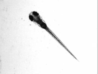 This is a video of a larval zebrafish swimming, viewed from above. These 4-mm-long fish can move their tail back and forth up to 80 times per second, so high-speed cameras are necessary to visualize their swimming movements. This video has been slowed down to see the swimming behavior. Credit McLean Lab/Northwestern University