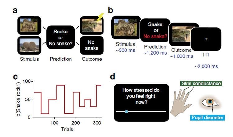 The experiment involved 45 volunteers who played a computer game in which they turned over rocks that might have snakes under them. They had to guess whether or not there would be a snake, and when there was they received a mildly painful electric shock on the hand. Over time they learned which rocks were most likely to harbour snakes, but those odds changed throughout the experiment, generating fluctuating levels of uncertainty.