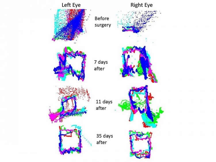 Using a technology developed at NYU Langone, the investigators had the participants watch a music video or television content for 220 seconds while they measured the ratio of horizontal to vertical eye movements. They discovered that in the neurologically healthy subjects, the ratios were close to one-to-one, with horizontal movements equaling vertical movements. But the 12 participants with nerve damage or swelling in the brain pressing on nerves all showed abnormal eye movement ratios correlating to the nerve that was affected. In every case where the abnormal eye movement was due to swelling in the brain, surgery to fix the brain problem also restored the eye movements to normal range.
